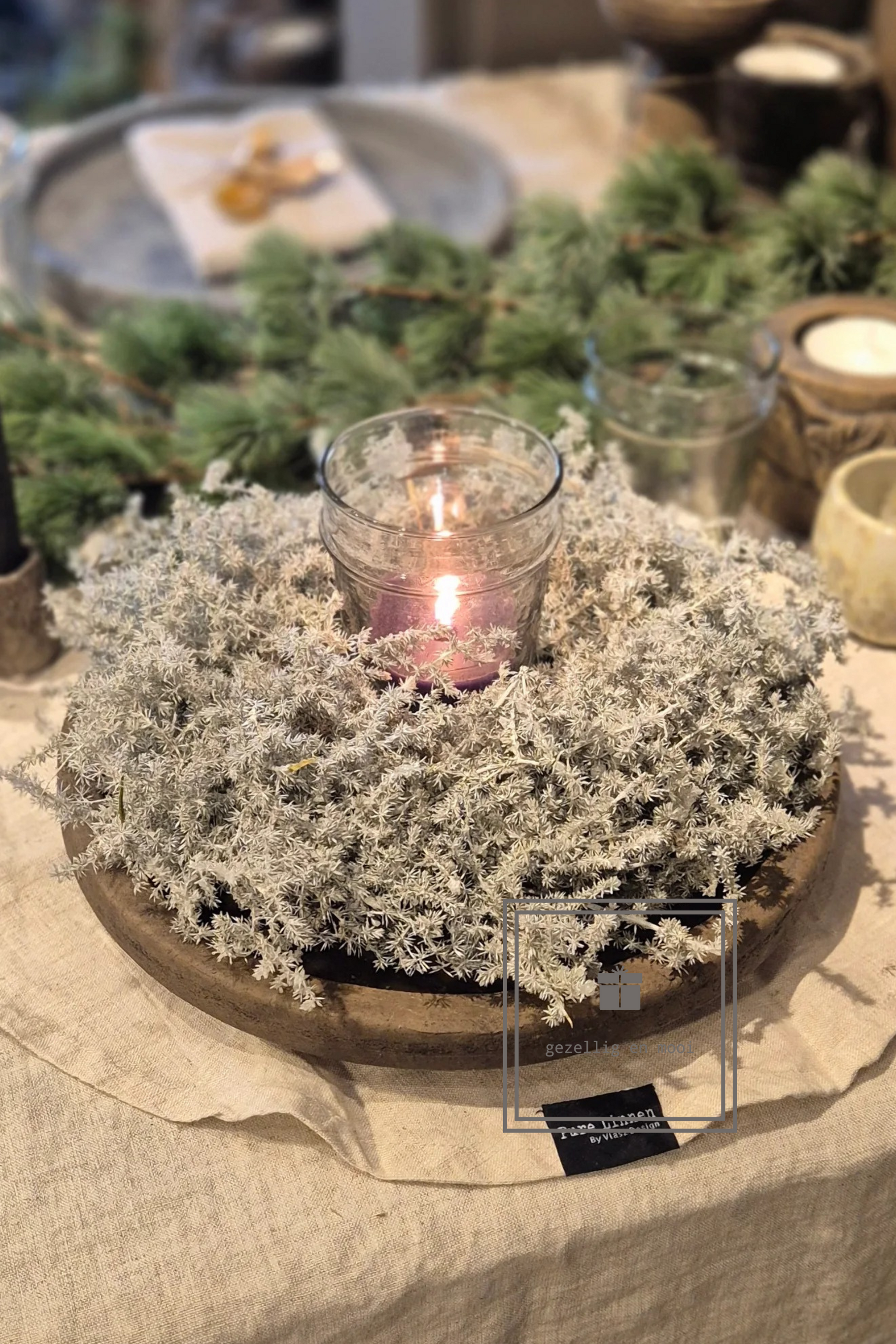 Hang de krans aan de muur, leg hem op tafel met een stoere kaars in het midden, of gebruik hem als decoratie in een landelijke kast of op een sidetable. Waar je hem ook plaatst, hij zorgt altijd voor een warme en huiselijke sfeer.