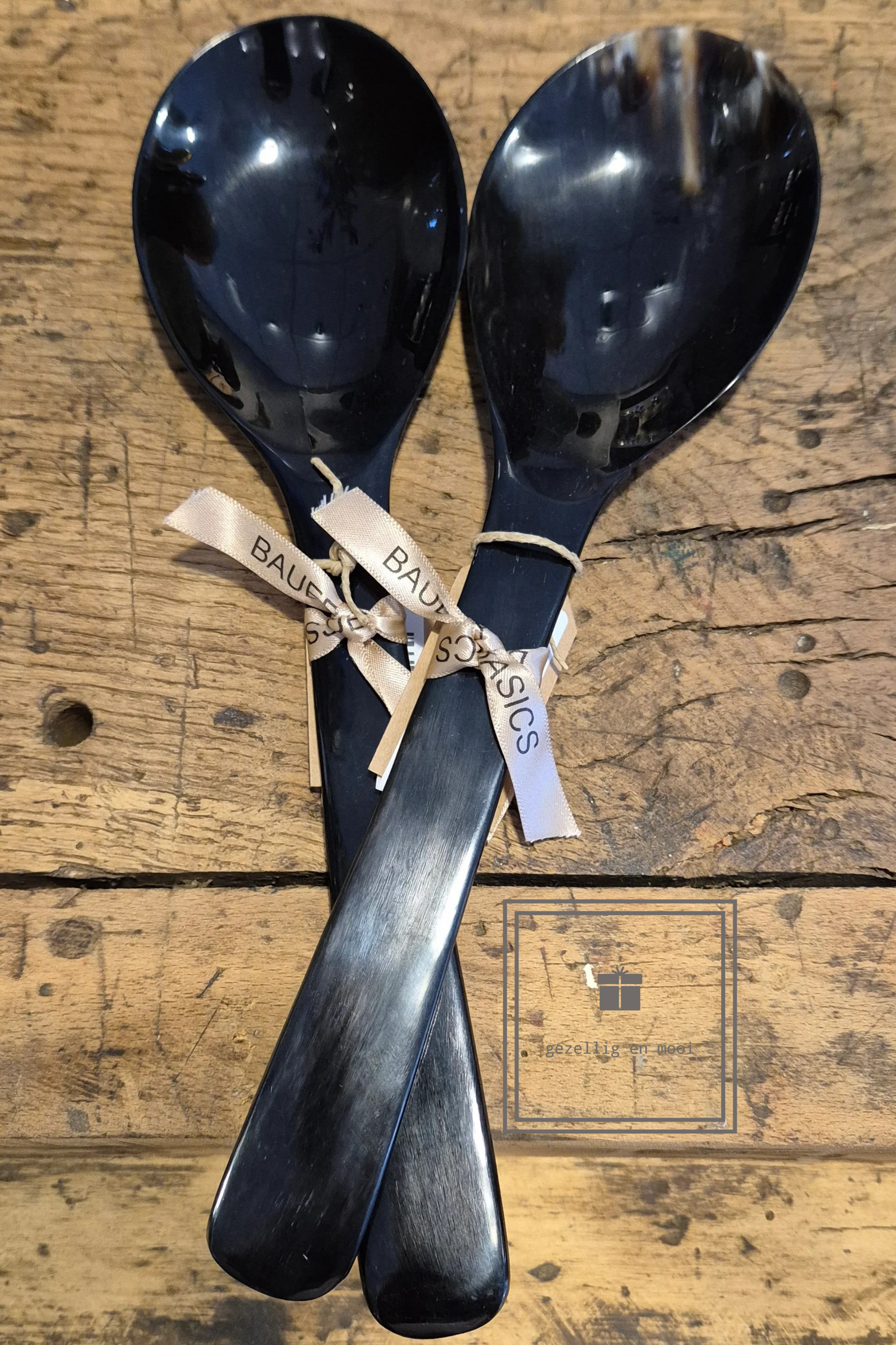 Buffelhoorn mag niet in de vaatwasser! Je kunt dit materiaal het beste schoonmaken met lauw water, liever geen zeep en meteen afdrogen. Gebruik in ieder geval geen heet water en laat je producten niet in het water liggen, daar kan buffelhoorn niet tegen omdat het poreus is. Voor de duur van een maaltijd is het prima om je lepels in een salade, saus of jam te laten staan. Als je buffelhoornen items een beetje uitgedroogd zijn dan kan je ze insmeren met een eetbare olie, zoals bijvoorbeeld olijfolie.