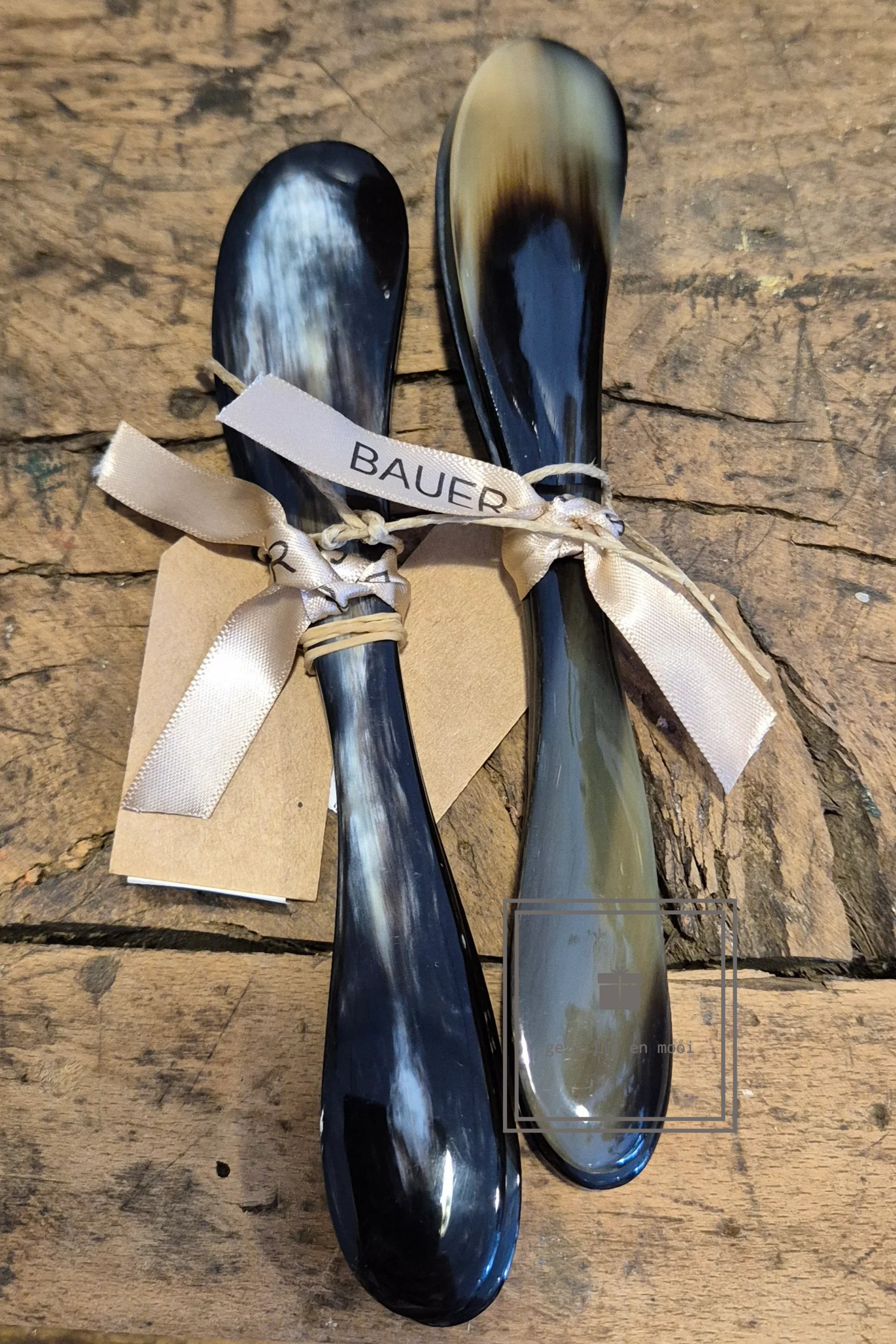 Voeg natuurlijke elegantie toe aan je ontbijttafel of borrelplank met onze handgemaakte smeermesjes van buffelhoorn. Perfect voor boter, zachte kazen, paté of tapenade – deze mesjes smeren soepel en liggen prettig in de hand. Elk exemplaar is uniek, met prachtige natuurlijke kleurvariaties en een gladde afwerking.