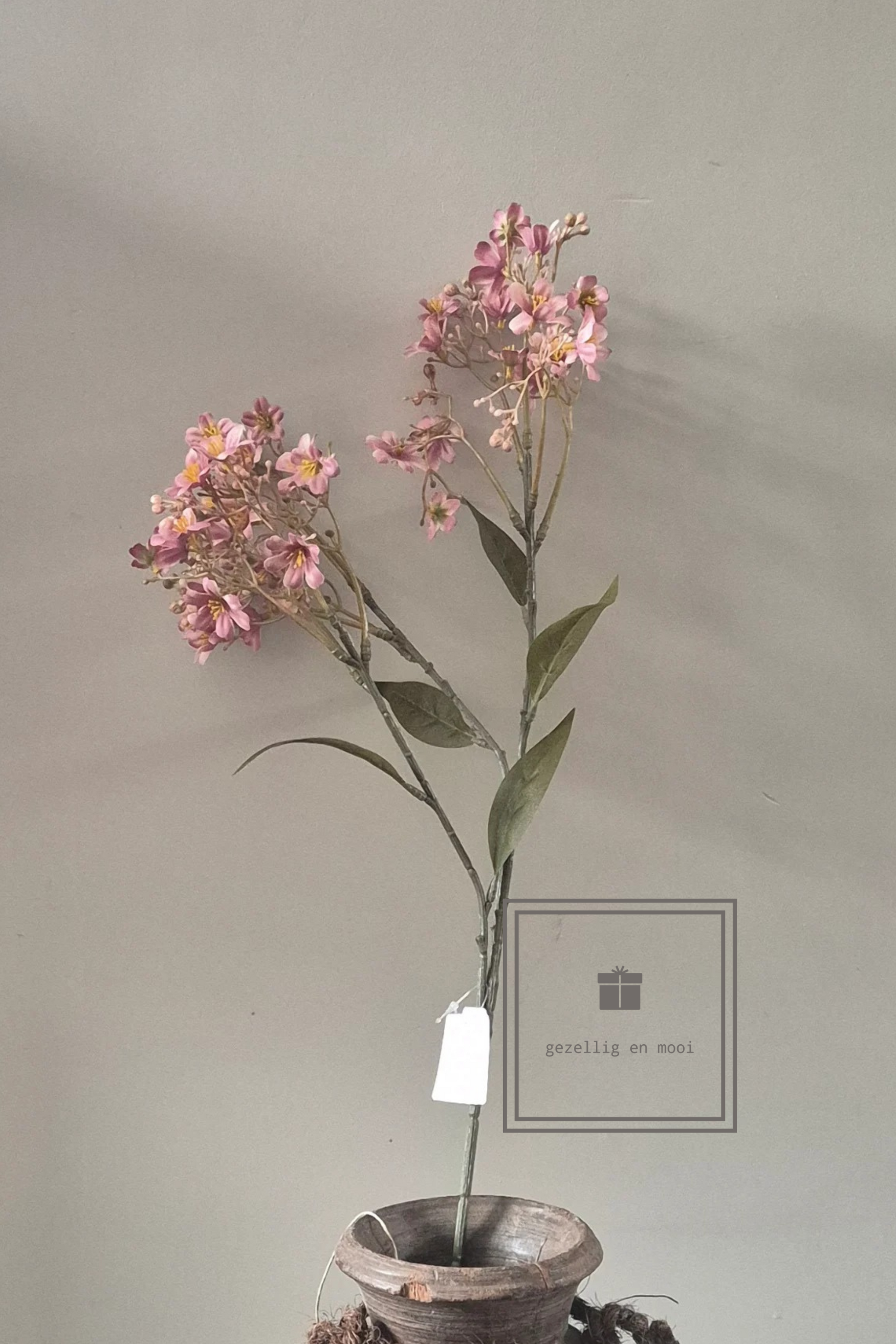 Een mooie volle tak met roze bloemetjes. De tak is 72 cm