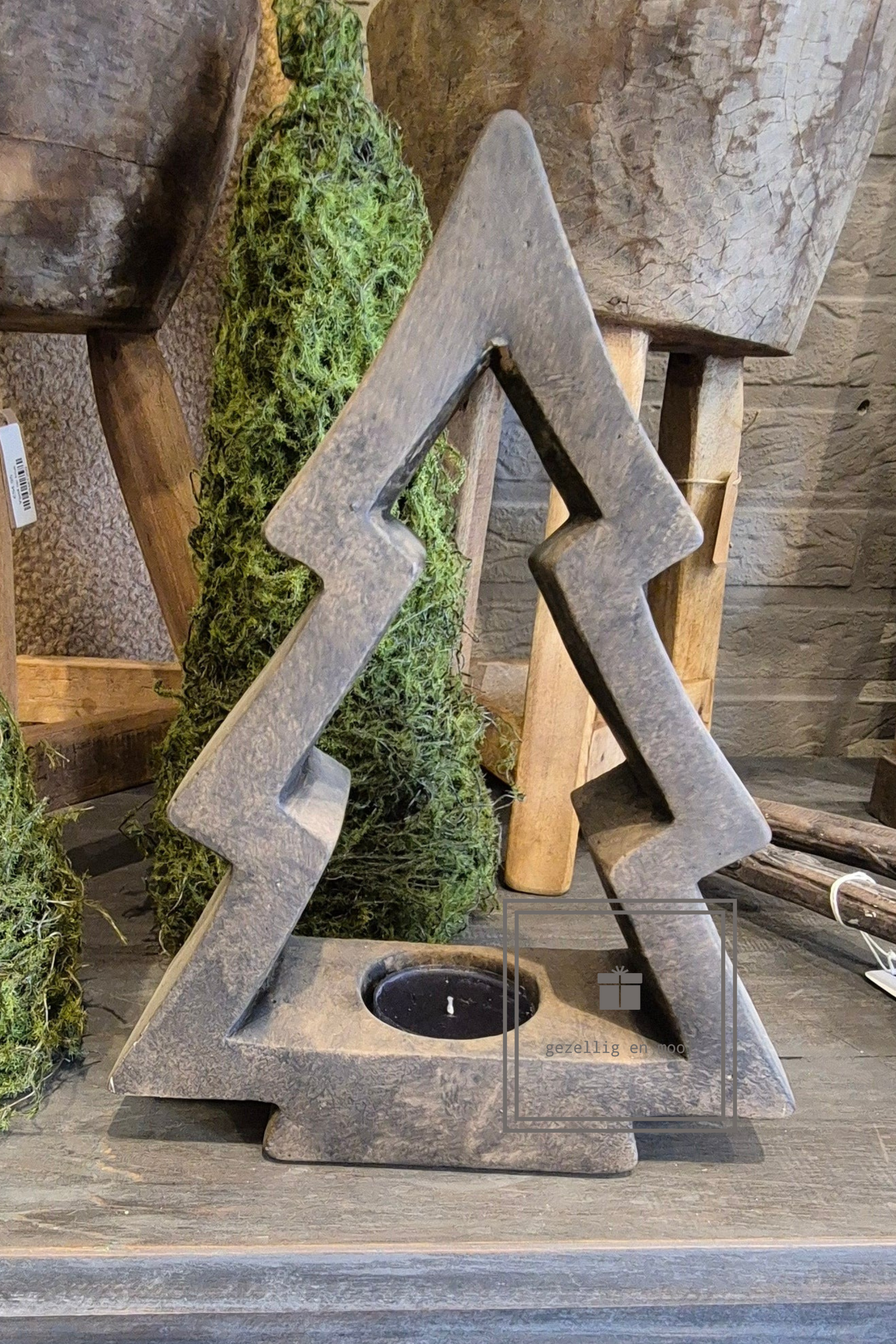 Deze charmante kerstboom met waxinelichtje, hier past een groot waxinelichtje in, brengt direct een warme en knusse sfeer in huis. Het zachte schijnsel van het kaarsje laat de details van de boom prachtig uitkomen en zorgt voor een gezellige, winterse ambiance– perfect voor op tafel, vensterbank of dressoir.
