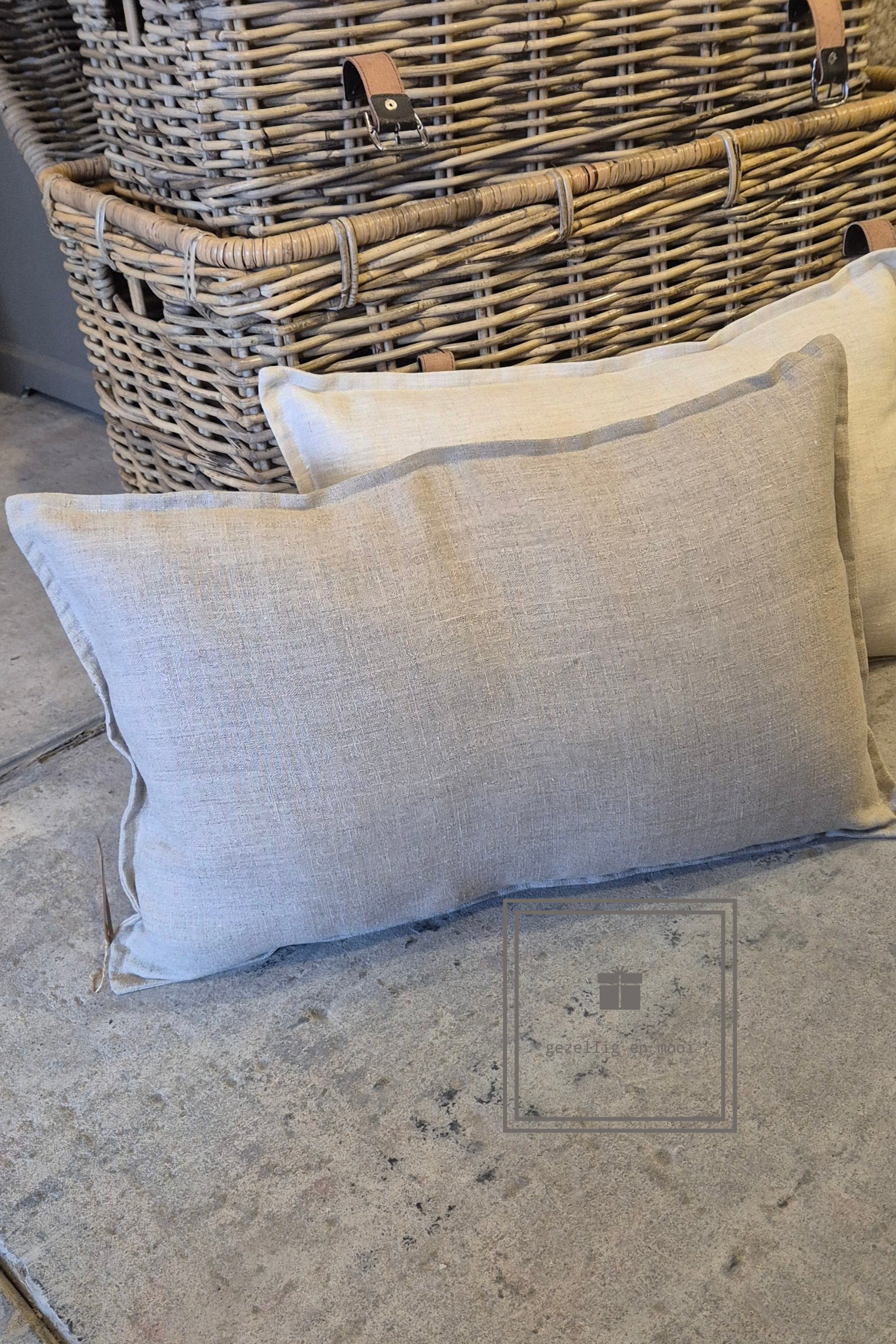 Het linnen is grof geweven en heeft een stoere uitstraling. Linnen wordt steeds mooier en zachter naarmate je het vaker wast en gebruikt.