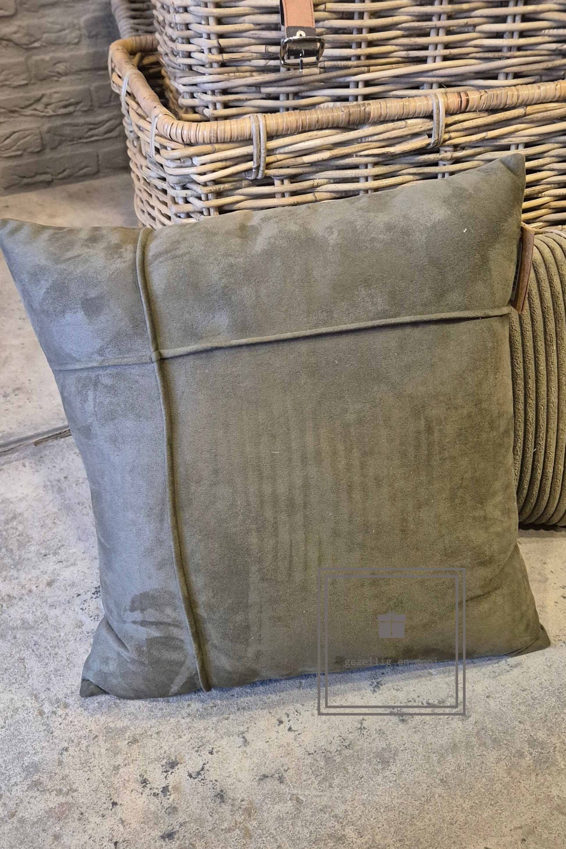 Het kussen is gemaakt van een mooie suede-achtige stof met doorgestikte naden aan voorzijde.