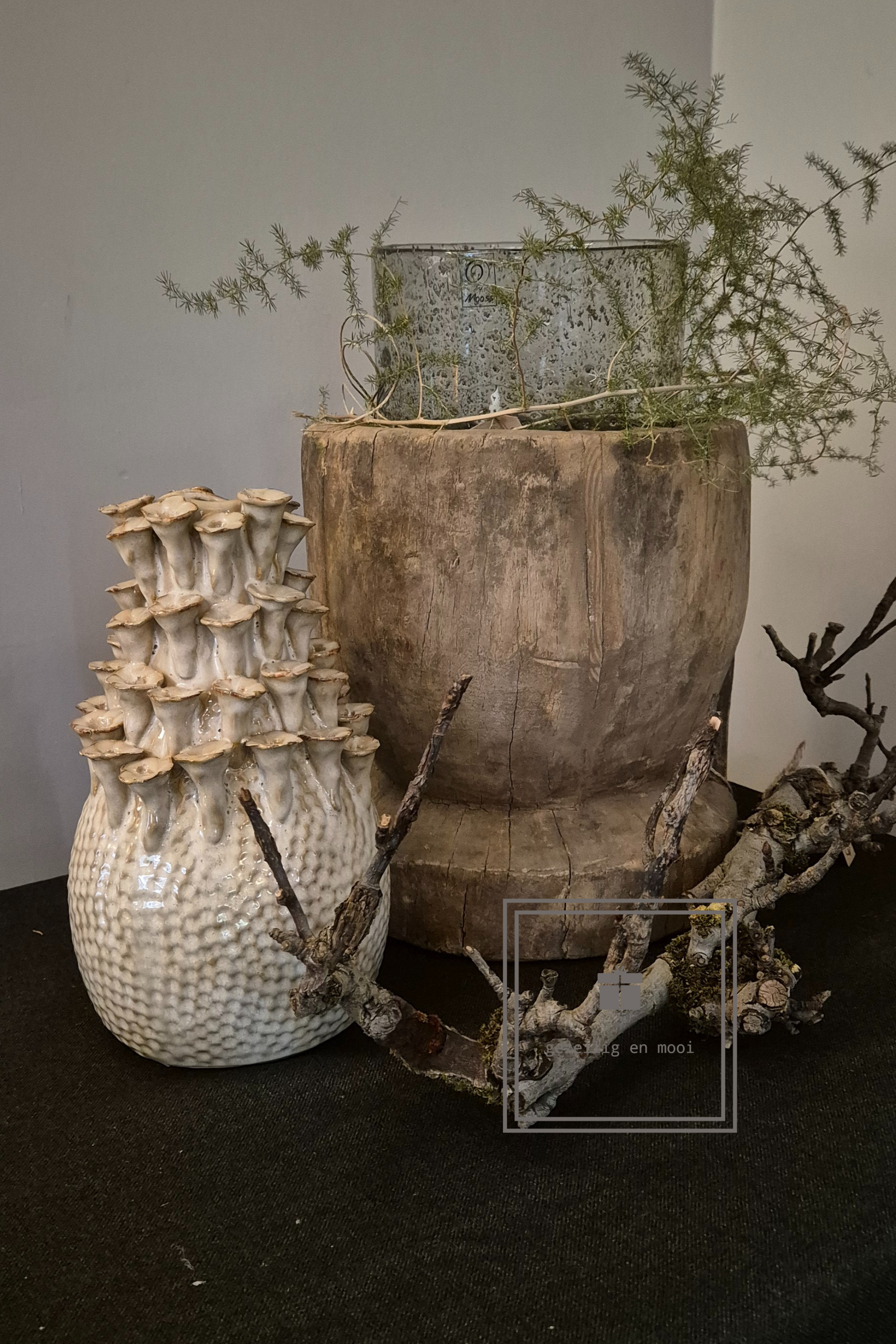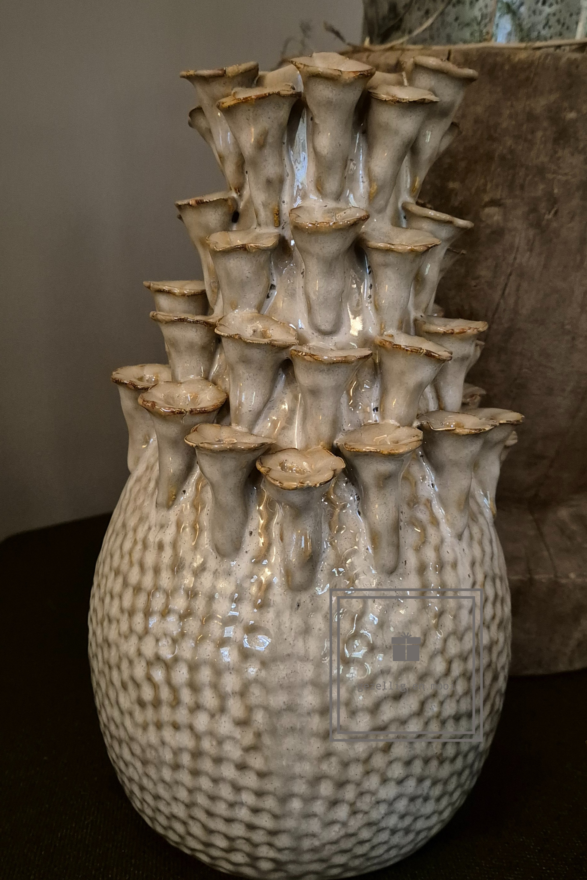 Deze mooie chique vaas past perfect in een landelijk interieur, mooi in combinatie met grof hout.