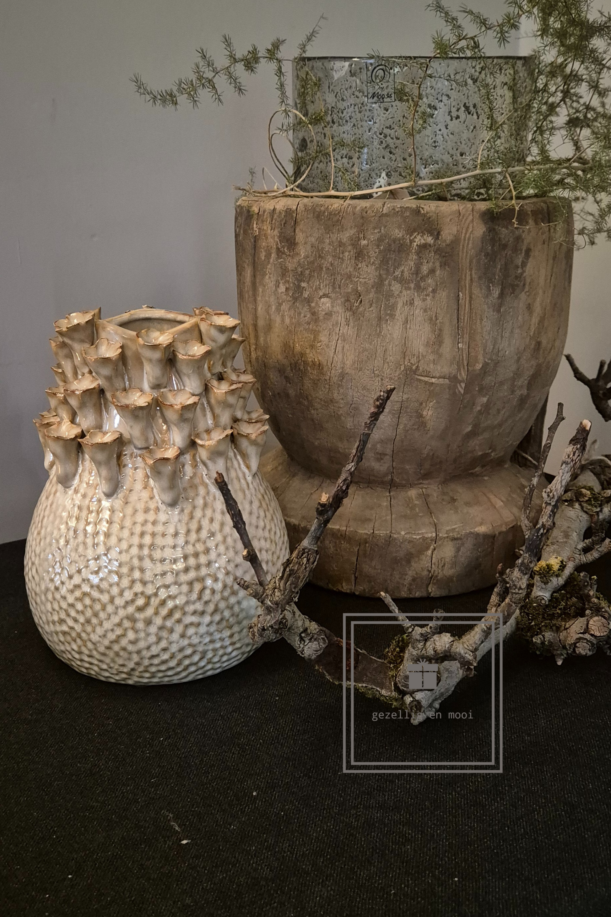Deze mooie chique vaas past perfect in een landelijk interieur, mooi in combinatie met grof hout.
