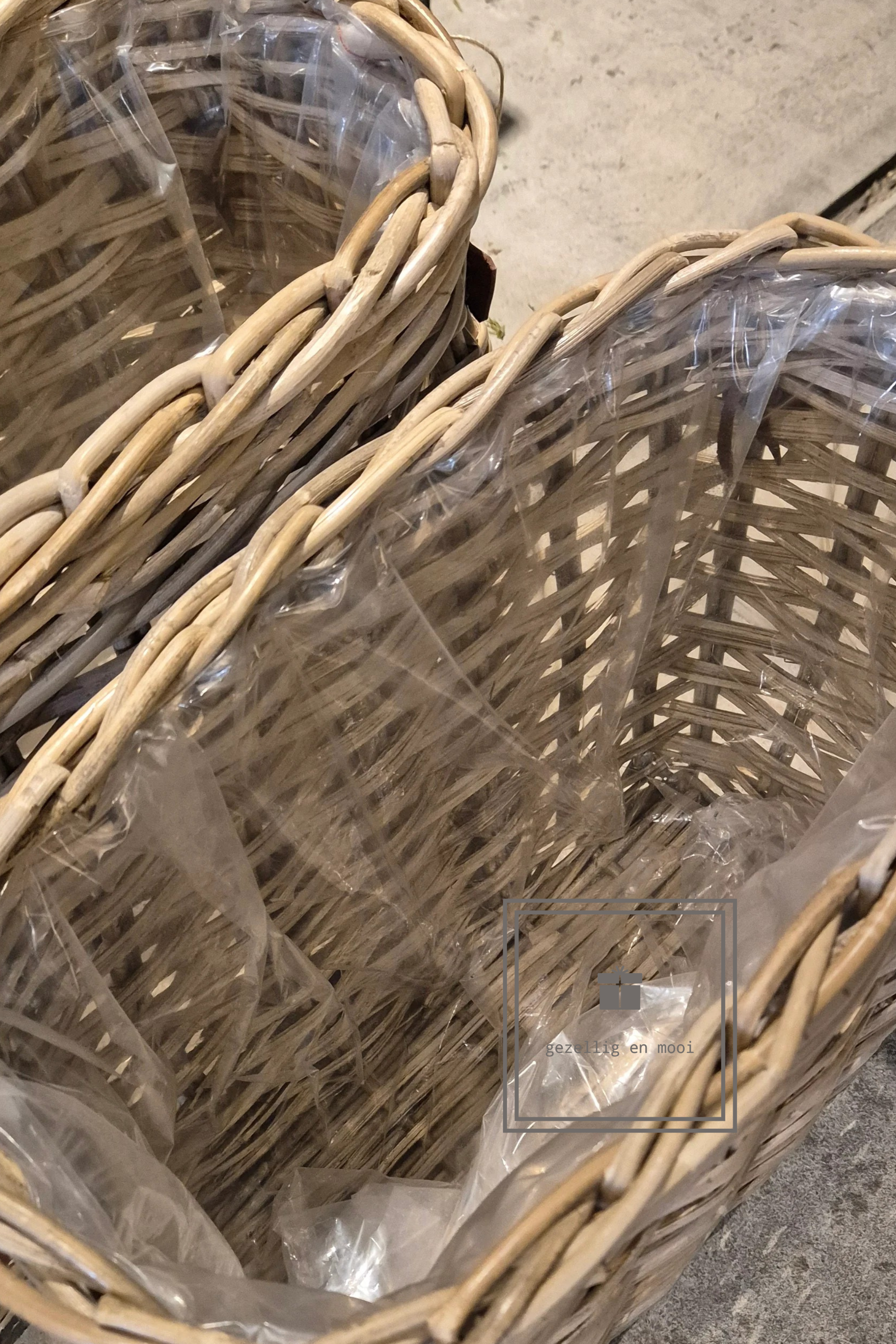 De mand is inclusief plastic binnenzak zodat er ook echte planten in kunnen.