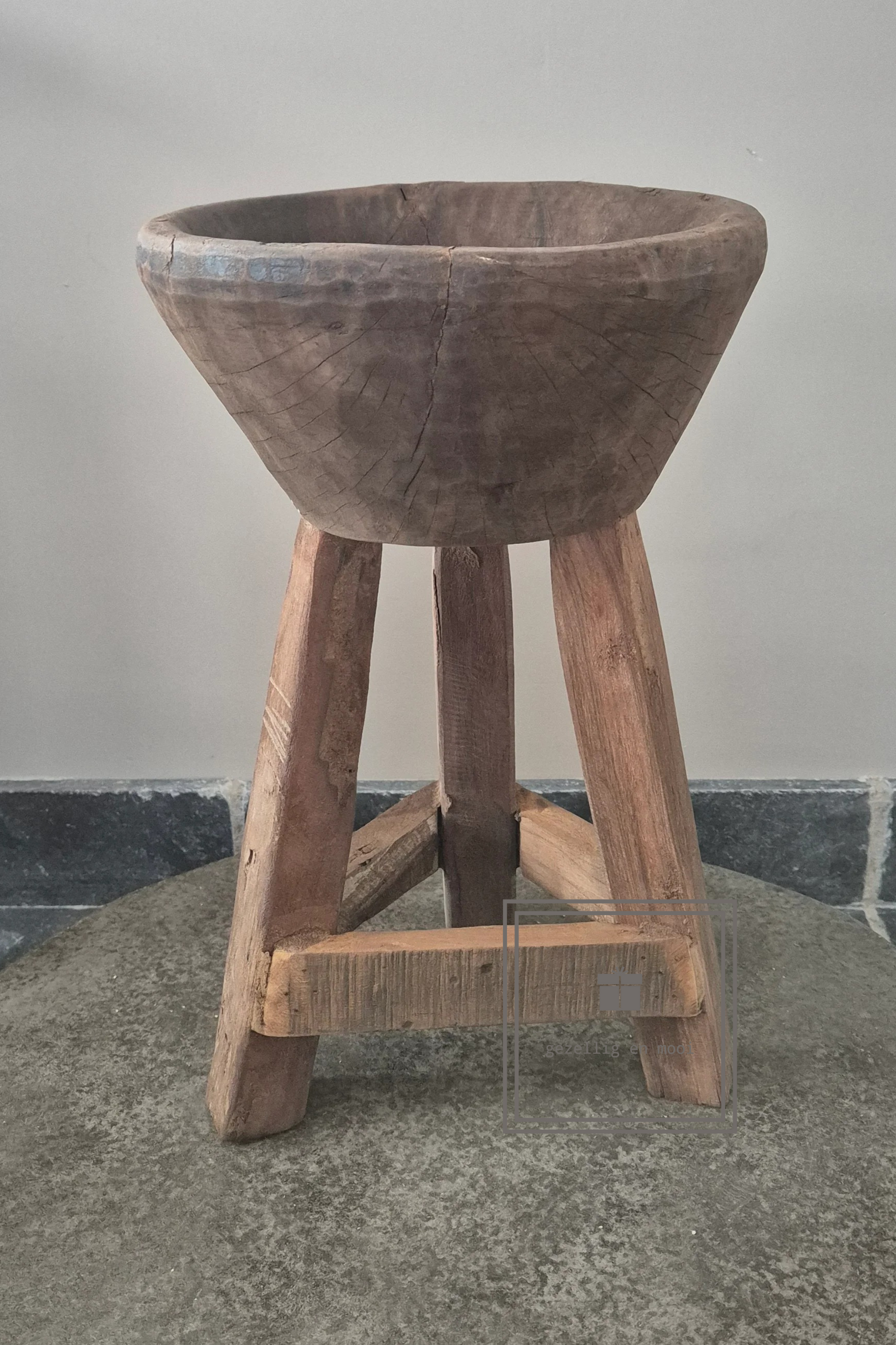Breng warmte en karakter in je interieur met deze prachtige houten vijzel op kruk. Het robuuste hout en de unieke vorm maken dit item een echte eyecatcher in huis.