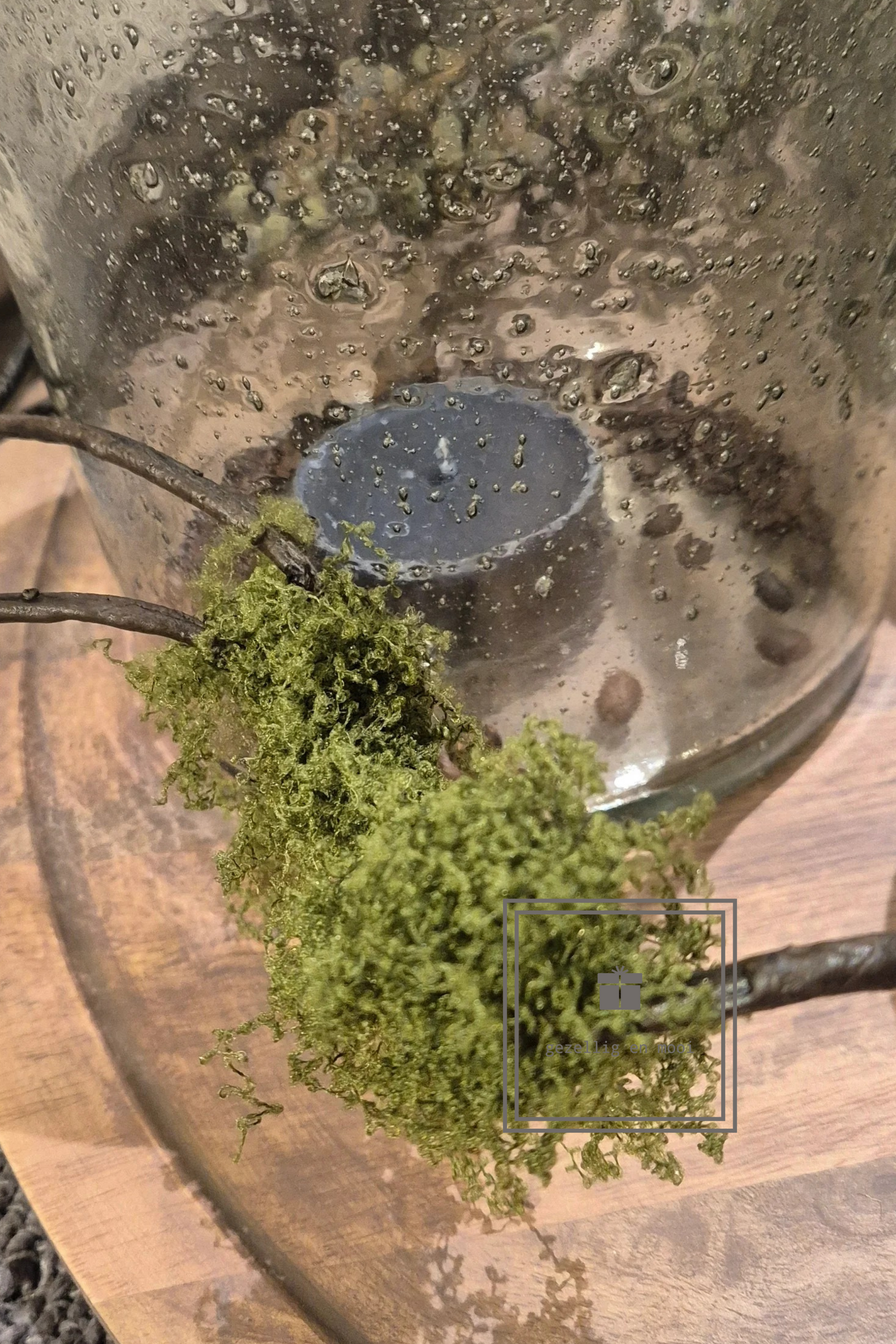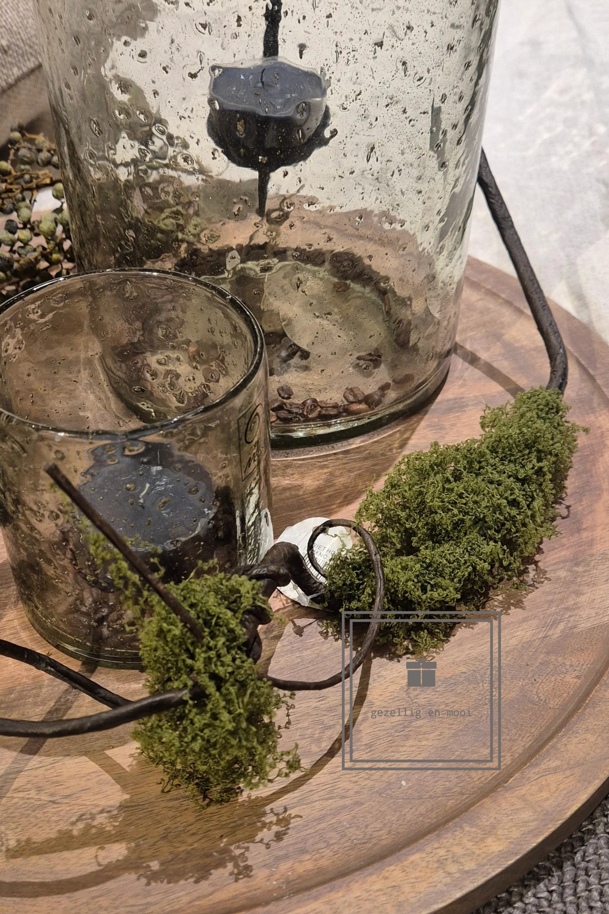 Lengte van de tak is ongeveer 70 cm. Elke wijnstok is anders qua lengte en hoeveelheid kunst mos.